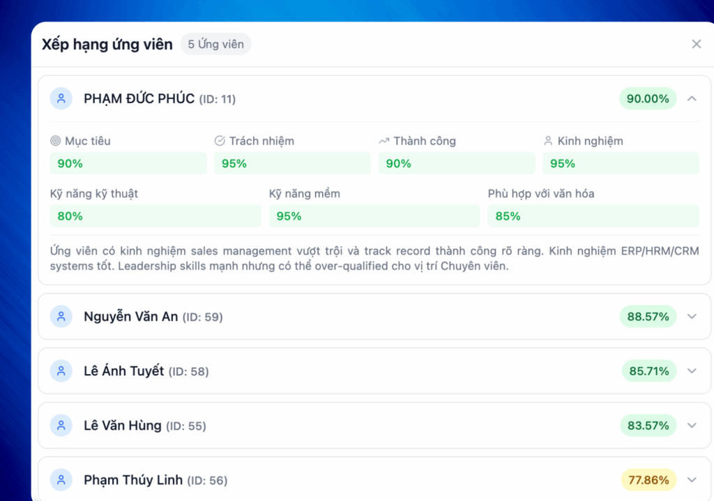 Đánh giá năng lực bán hàng giúp doanh nghiệp đo đúng năng lực và tiềm năng của đội ngũ kinh doanh. Từ dữ liệu hành vi và kỹ năng thực tế, nhà quản lý có thể tuyển đúng người, đào tạo đúng hướng, xây dựng đội ngũ bán hàng hiệu quả và bền vững.