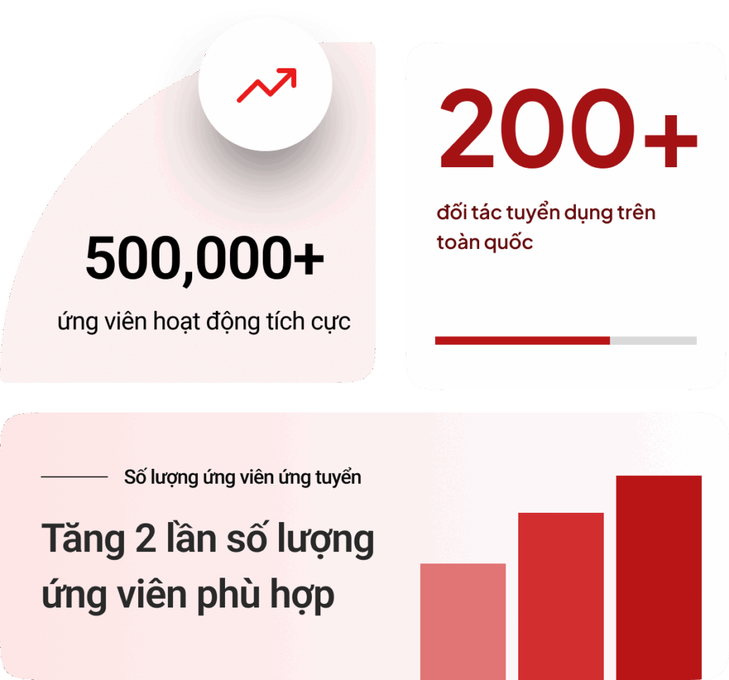 • Đa dạng nguồn ứng viên từ các đối tác tuyển dụng với nhiều mức giá cạnh tranh