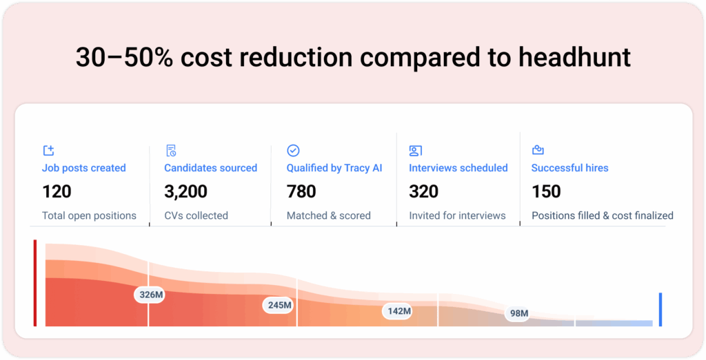 Tiết kiệm đến 30-50% chi phí so với dịch vụ headhunt